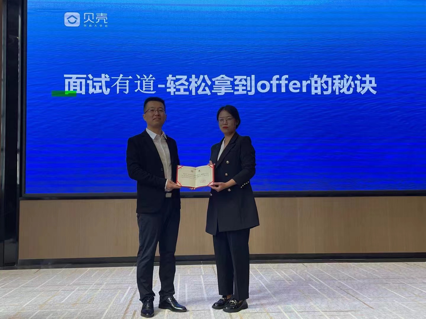 为了帮助同学们提高面试技巧,提升自身的就业能力,2021年10月26日上午,商学院邀请广州贝壳科技服务有限公司培训文化主管雷重英女士于花都校区图书馆416为2018级市场营销专业全体学生作“面试有道”专题讲座。讲座开始前,商学院副院长程振锋副教授为雷重英女士颁发了学院产业导师聘书。