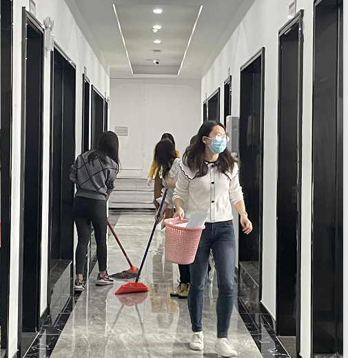 为做好新冠疫情防控工作,进一步强化疫情防控措施,保障全校师生的健康安全,根据广工商院发[2022]63号文件《关于开展爱国卫生运动助力新冠肺炎疫情防控工作的通知》,商学院定于4月21日下午2:00-3:00开展商学院大楼卫生清洁工作,为建设美丽商学院贡献力量,本次活动由学院领导班子率领无课教职工积极参与。