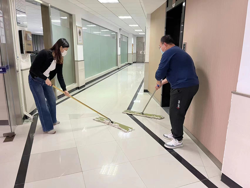 市场营销教研室老师在清扫商学院三楼科室,所到之处,窗明几净,焕然一新