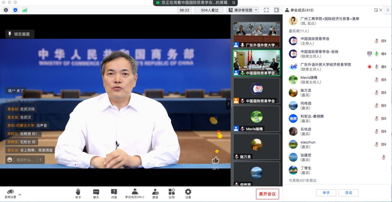 商学院国际经济与贸易专业全体教师线上参加中国国际贸易学会年会暨国际贸易发展论坛