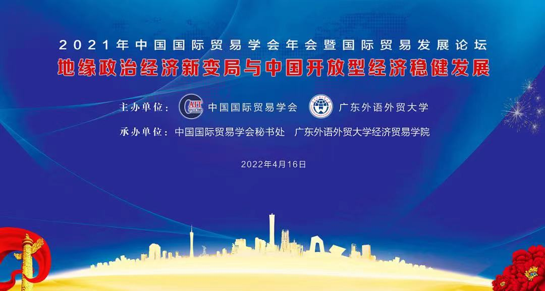 由中国国际贸易学会与广东外语外贸大学联合举办的“2021中国国际贸易学会年会暨国际贸易发展论坛”因疫情影响延期至2022年4月16日在北京和广州两地举行。本次大会主题为“地缘政治经济新变局与中国开放型经济稳健发展”,采用线上线下结合的方式进行。商学院国际经济与贸易专业全体教师通过腾讯视频参加了会议。