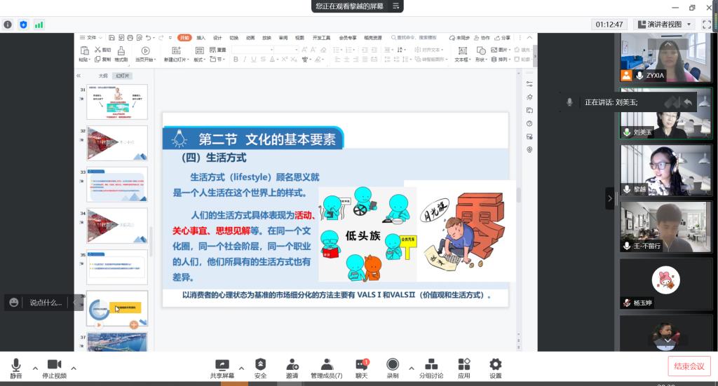 市场营销教研室于2022年5月9日19:30-21:00邀请刘美玉教授、谭晓丽、张艳霞副教授及校外专家高翔博士对参加本届青年教学竞赛的黎越、杨玉婷老师开展汇报交流与研讨工作。本次针对青年教师教学竞赛打磨研讨工作共进行了一个半小时,各位专家对参赛教师给出了很有建设性的建议,并指出要紧扣参赛评分要求准备素材,紧扣两性一度总体要求重新凝练知识点,注意引用前沿新数据,体现思政元素的润物细无声。(商学院 张艳霞)