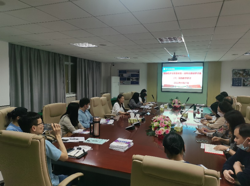 为进一步加强国际经济与贸易省级一流专业建设总体水平和妥善安排毕业事宜,2022年4月21日,国贸教研室全体教师在商学院501召开国际经济与贸易省级一流专业建设实践教学研讨专题会议。国贸教研室主任潘银坪、国贸专业带头人李勤昌教授及全体教师参与本次专题研讨会,分别就实验(实训)、专业实习、课外实践、毕业论文四个主题分模块开展交流和研讨。会上传达了学院最新文件精神,为后续各项任务的开展指明方向。
