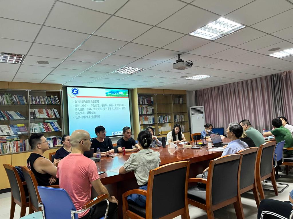 为落实学院发展规划,凝聚投资学专业教师力量。2022年9月15日中午12:30,商学院投资学专业于304会议室就投资学专业发展方向、专业特色以及如何进行产教融合召开研讨会。钟嘉毅主任、玄海燕教授、邓留保教授、程飞博士以及各专业专任教师出席会议。