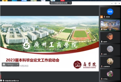 为规范商学院2023届本科生毕业论文管理,贯彻执行学校有关毕业论文管理规定和要求,保证学生毕业论文的顺利完成,促进毕业论文质量的不断提高,商学院于2022年10月28日晚线上召开了商学院2023届毕业论文工作启动会,会议由商学院程振锋副院长主持,商学院全体专任老师出席了本次毕业论文工作启动会。