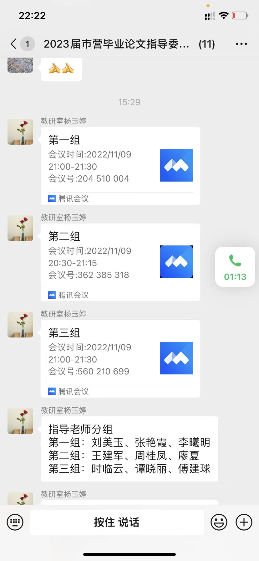 11月9日晚8:00,市场营销教研室在腾讯会议上召开毕业论文选题交流会,