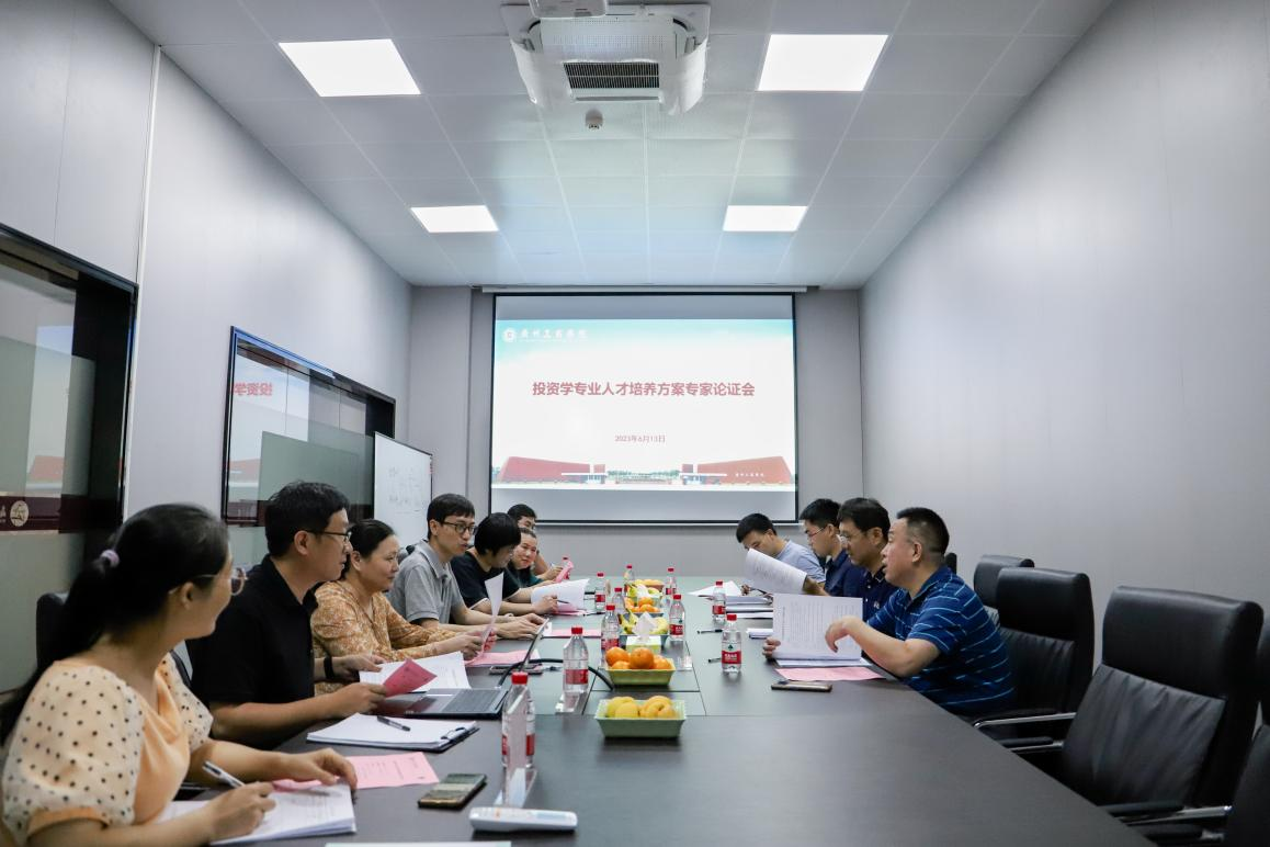 商学院投资学专业于2023年6月13日下午成功召开了2023版投资学专业人才培养方案专家论证会。会议邀请了广东省本科高校金融学类专业教学指导委员会和行业专家参与这次人才培养方案论证,分别是华南理工大学经济与金融学院徐枫副院长和华南师范大学经济管理学院金融系屠新曙主任以及深圳天择教育科技有限公司曹阜兴总经理和广州易锋行信息技术有限公司何建飞副总经理。投资学专业教研室主任程飞博士和曾素梅教授等5名投资学教师参加了此次会议,商学院院长助理关建波博士主持这次会议。