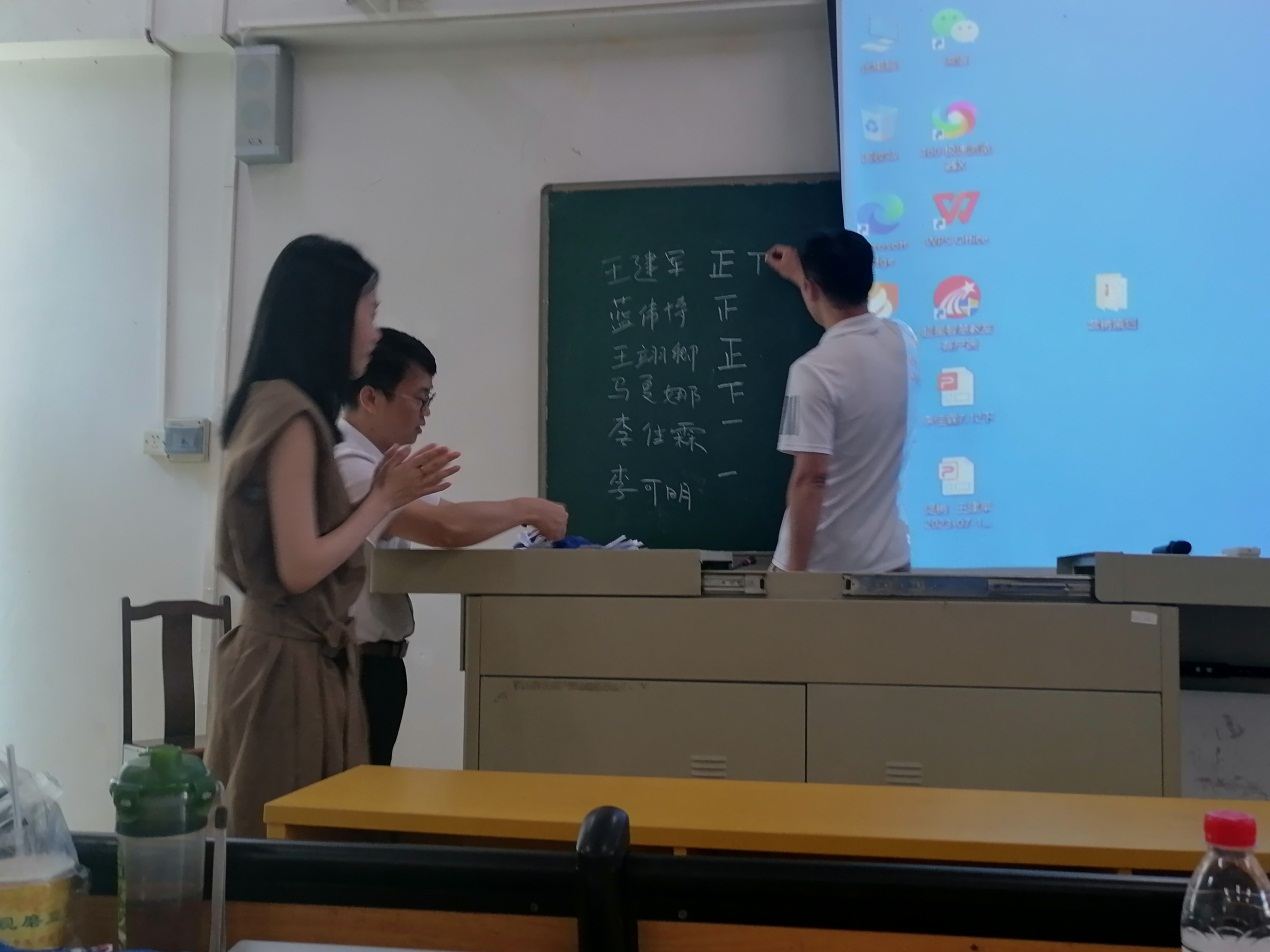 7月12日上午,由教研室王建军主任进行专业介绍和科研与论文指导;下午由教研室优秀教师进行示范课和案例教学展示。7月13日,教研室按课程群将新教师分为4组,每组7人。每位教师根据下学期的授课课程,分别轮流进行15分钟的真实教学展示,其他成员提出问题并给予相关的改进建议。7月14日,每组教师根据组成员反馈的意见进行修改和完善,并再次进行一轮15分钟的教学显示,其他组成员进行匿名投票,最终每组选出前3名。第一组:戈方,冼嘉瑶,王萱;第二组:欧阳欣、陈曦、刘晓彤;第三组:谭敏儿,王禹潼,陈抒;第四组:王建军,王翊卿,蓝伟博。王建军主任对以上12名教师进行了表彰,并发放小礼品。