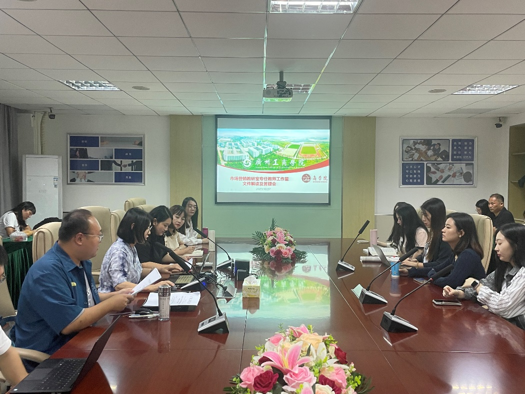 为更好贯彻落实学校关于教师工作量的评价标准,充分调动教师的工作积极性,提高人才培养、科学研究和社会服务的水平,推动教学研究和教学改革,鼓励参与管理服务和学生指导,市场营销教研室于2023年10月7日在商学院501会议室组织开展了专任教师工作量文件解读及答疑会,全体教研室老师参与。