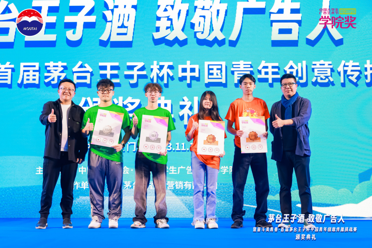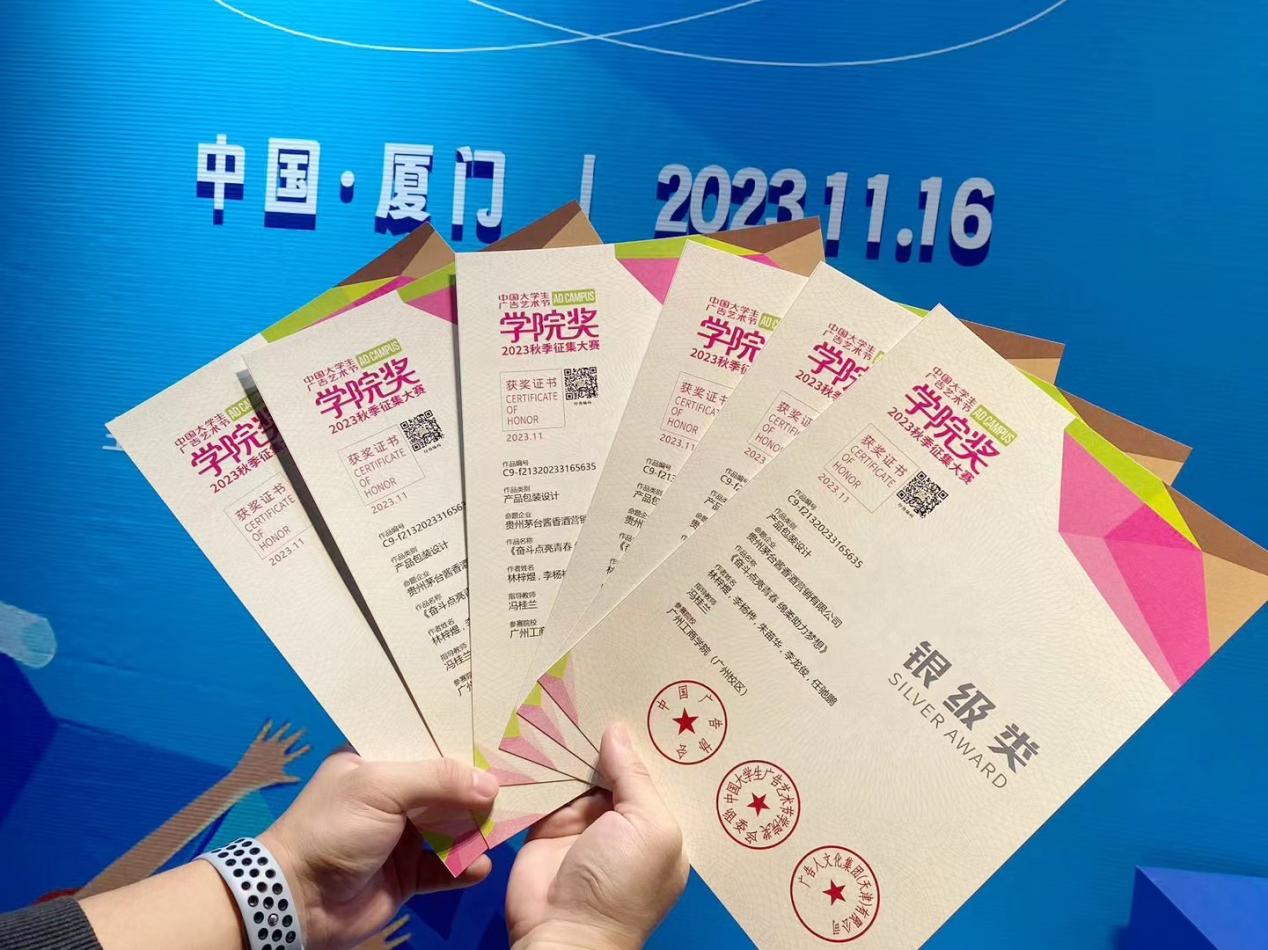 中国大学生广告艺术节学院奖2023秋季征集大赛“致敬广告人·奋斗美青春”首届茅台王子杯中国青年创意传播挑战赛于11月16日在厦门揭晓了比赛结果,由电子商务教研室的冯桂兰教师指导的学生作品在选拔赛中脱颖而出,成功获得大赛银奖(获奖学生:林梓煜、李杨桦、朱苗华、李龙俊、任驰鹏),冯桂兰老师也被授予大赛银奖类指导老师的殊荣。