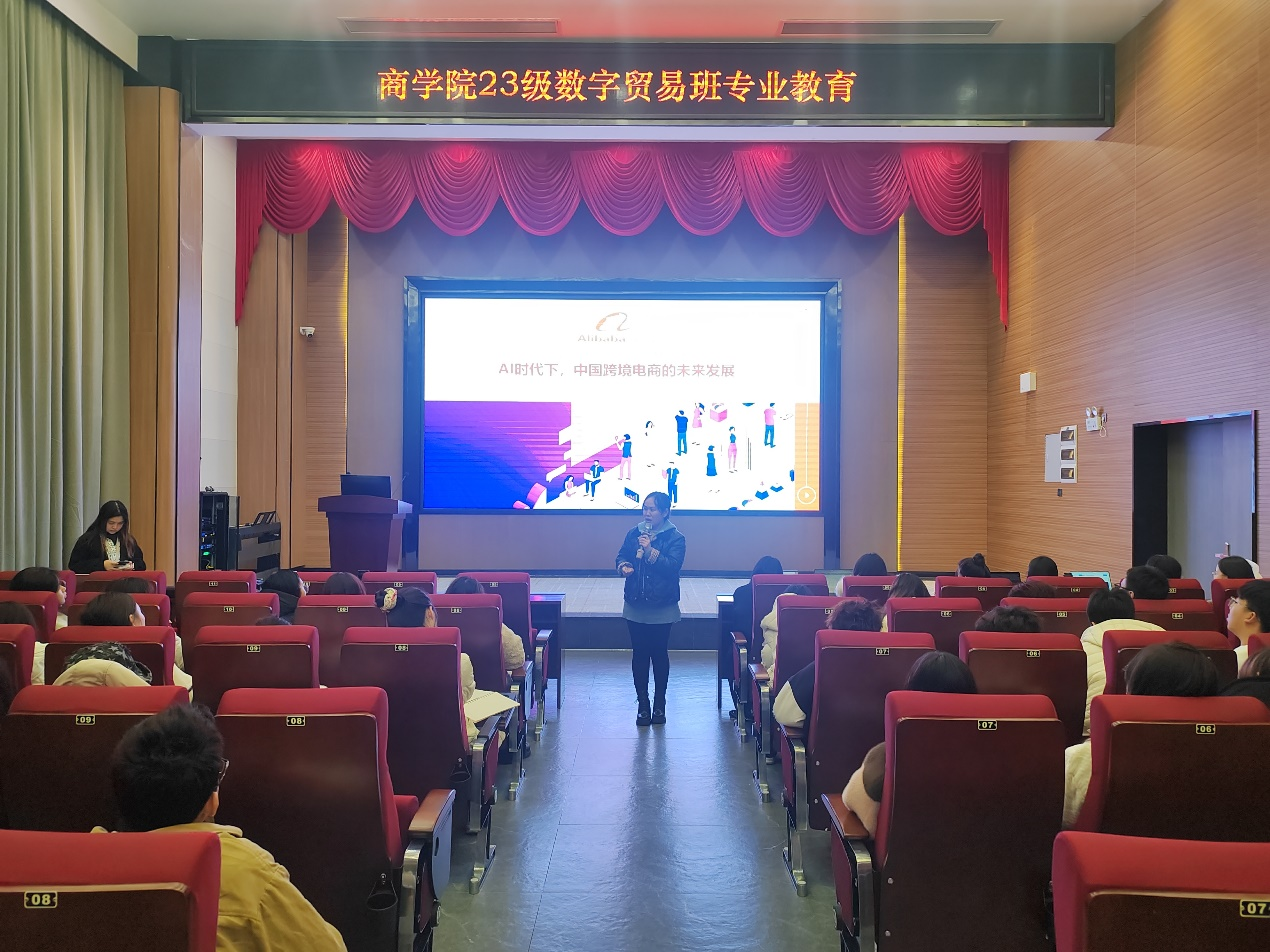 紧接着,专业负责人潘银坪老师为学生们讲解了数字贸易专业的发展方向,并从人才培养角度指导学生如何规划大学生涯,学生们对此受益匪浅。