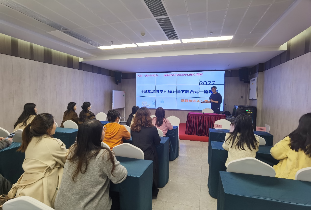 为了更好地落实建设任务,更高效地做强一流专业,培养一流人才,提高专业建设水平,2023年12月28日,ky开元集团官网商学院国际经济与贸易专业举办了一流专业建设研讨会。会议邀请了国际经济与贸易国家级一流专业建设点的负责人参加。广东财经大学经济学院副院长徐忠爱教授进行经验分享,64名国贸教研室教师参与了此次研讨会。