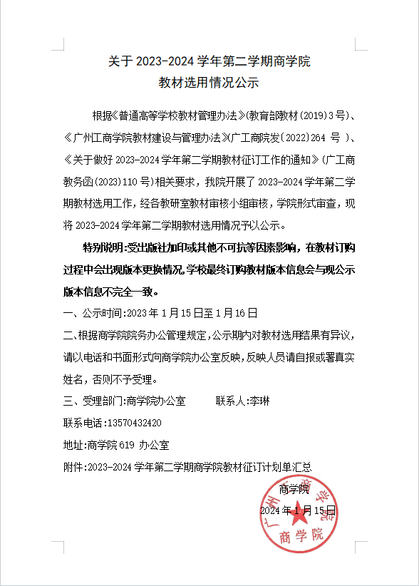 关于2023-2024学年第二学期商学院 教材选用情况公示