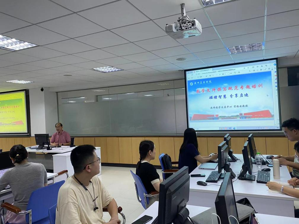 此次研讨由李勤昌教授主持,首先,李教授深入解读教学文件撰写的规范和要求;其次又以所授课程《国际贸易实务(双语)》为例,向老师们展示在撰写教学资料时需要注意的问题点,并对要点、细节、技巧、注意事项等一一剖析,针对PPT设计、教案内容设置、课程思政融入等内容进行指导,指出共性问题,让老师们对教学资料的撰写有了深刻的认识。