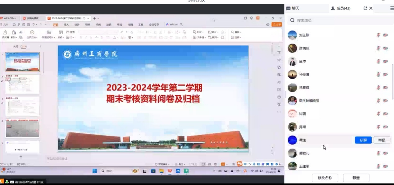 临近期末,为有序开展期末考试工作,按时完成各项教学任务,6月23日晚上8点,市场营销教研室在腾讯会议召开了学期期末考核资料整理收集工作说明会,会议由教研室副主任曹明香老师主持。市场营销教研室全体教师参加了此次会议。