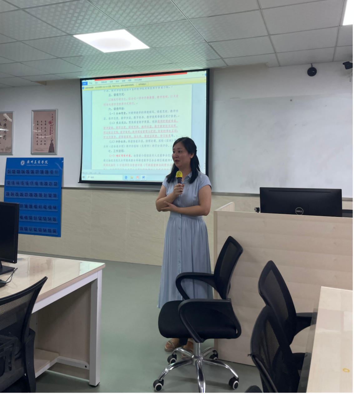 会议中,易巧主任详细介绍了“关于开展本科课堂教学质量专项督查的通知”。她指出,本次督查工作将采取随机听课的方式,并结合上一学年的评教数据、教学视频以及相关教学资料的审查。督查小组将指定专人利用抽选系统,从本学期担任本科课堂教学任务的所有教师中,每周随机挑选五位教师作为督查对象,并在周日下午三时至五时之间,通知被选中的教师及其所在教学单位。易巧主任强调了课堂管理和课堂思政融合的重要性,并分享了教师在课程思政融合方面的成功案例。除了课堂教学质量,她还指出必须重视教学材料的严谨性,及时更新教学资料,确保教学进度表与实训指导书等材料的使用以及撰写人与审核人的电子签名及手写签名的准确性。