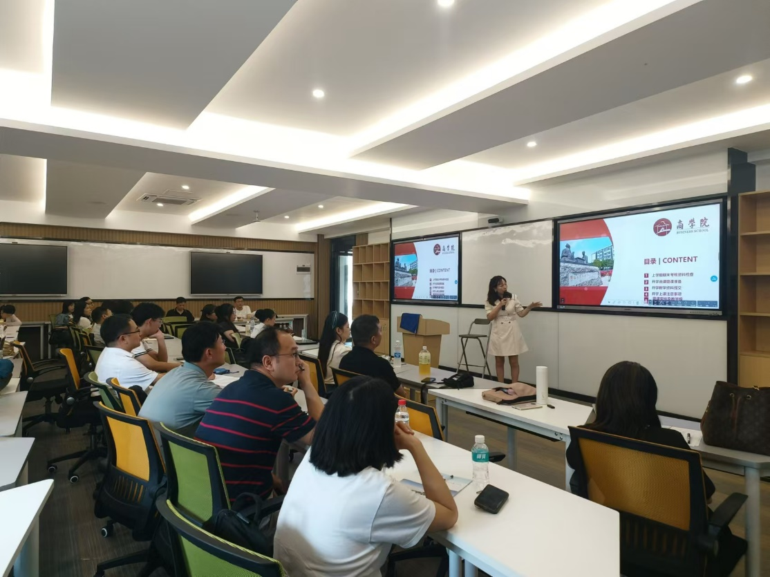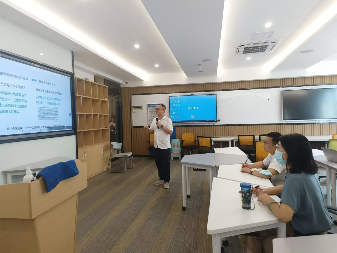 随后,各课程群展开为期2天的磨课活动。活动采取分组研讨、模拟授课、即时反馈与集体优化的形式进行,力求在每一个细节上精益求精,确保教学内容的准确性和教学方法的多样性。谢源升老师以“董事会”的真实案例为课前事例,对《公司治理》课程中董事选聘、董事职能和董事会职权做了磨课演练,语言精练,教学风格明显,授课内容融入了课程思政元素。