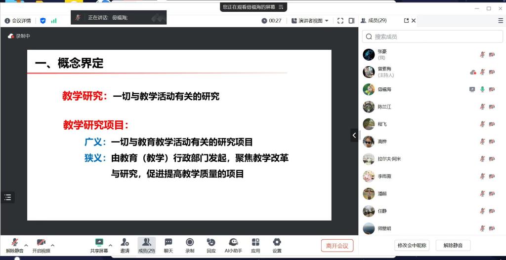 为了推动高等教育教学改革,提升项目申报质量,投资学专业于2024年9月7日举办以“高等教育教学改革项目申报”为主题的专题讲座,投资学专业全体专任教师参加。本次讲座旨在通过线上平台,汇聚教育领域的专家智慧,为广大教师提供及时、精准的申报指导,助力高等教育事业的蓬勃发展。