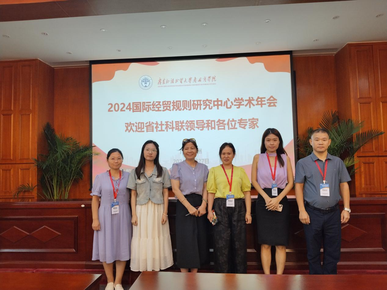 2024年9月27日,ky开元集团官网商学院国际经济与贸易专业教师团队应邀参加了在广东外语外贸大学南国商学院国际会议厅举办的“2024国际经贸规则研究中心学术年会”。此次年会以“中国经济高质量发展与国际经济贸易新格局、新趋势、新规则”为主题,旨在贯彻落实党的二十大精神和习近平总书记考察广东的重要讲话精神,进一步推进高水平对外开放,稳步扩大规则、规制、管理、标准等制度型开放,为国内外从事国际贸易规则研究的专家学者、业界人士搭建学术交流与分享的平台。