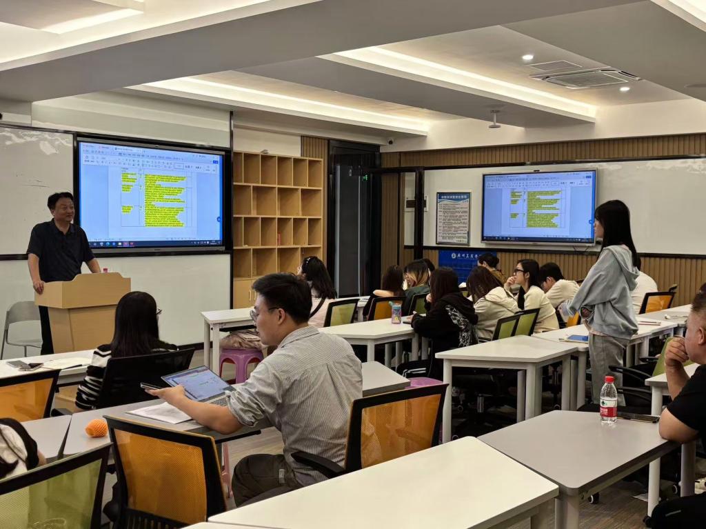 会议伊始,李勤昌教授对本次会议的召开表示欢迎,热烈邀请了宋秀峰教授对赛事进行说明和培训。接着宋秀峰教授向在座师生主要介绍了全国外贸单证岗位技能大赛的背景、赛事流程和注意事项,并耐心解答了同学们的疑问。最后,宋秀峰教授鼓励同学们积极报名该赛事,踊跃参与,提高自己的竞赛技能,争取在本届大赛中获得优异的成绩!
