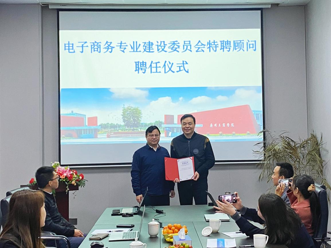 在商学院618会议室,由电商专业负责人邓任锋高级工程师详细介绍电商专业的具体情况,全国电子商务产教融合创新联盟副理事长陈晔结合实际,在分享中提及国赛规模宏大,竞争激烈。他着重强调比赛场地的稳定性与技术支持的重要性,以及比赛当天选手在时间管理、数据安全和与评委沟通等方面的注意事项。浙江师范大学教授邹益民则以亲身经历分享上一届商务大数据分析省赛经验,并对参赛过程中所遇痛点和难点做了发言。最后,聘任邹教授为电子商务专业建设委员会特聘顾问,其丰富经验将为赛事注入新动力。