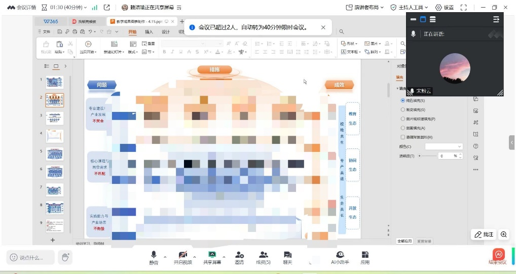 会议中,宋粉云教授围绕教学成果奖申报书的撰写规范与结构框架展开详细讲解。她强调,申报书需突出“思政铸魂、数智赋能、产教融合”三大核心要素,通过具体成果与数据支撑,展现项目在应用型商科人才培养中的创新性与推广价值。宋教授特别指出,成果简介需凝练“耳目一新”的标题,内容描述需“文字凝练、图文并茂”,佐证材料需“全面、直观、可信”,并建议团队结合国家级和省级奖项、项目与案例,深入挖掘项目在课程思政、智慧课程建设及产教融合等模式上的突破性成果。