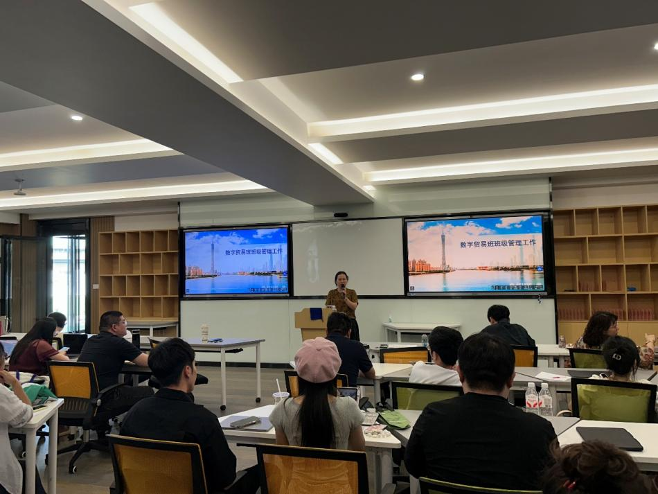 潘银坪教授围绕数字贸易班管理提出要求,班主任需深入研究课程体系,做好专业解读,组织班会并指导学生制定发展计划,关注学生心理健康。同时,要加强班级建设与团队协作,做好职业规划。学业导师要提供学业指导与学术支持,培养学生创新能力,推进科研与实践教学、企业合作、就业指导等工作。