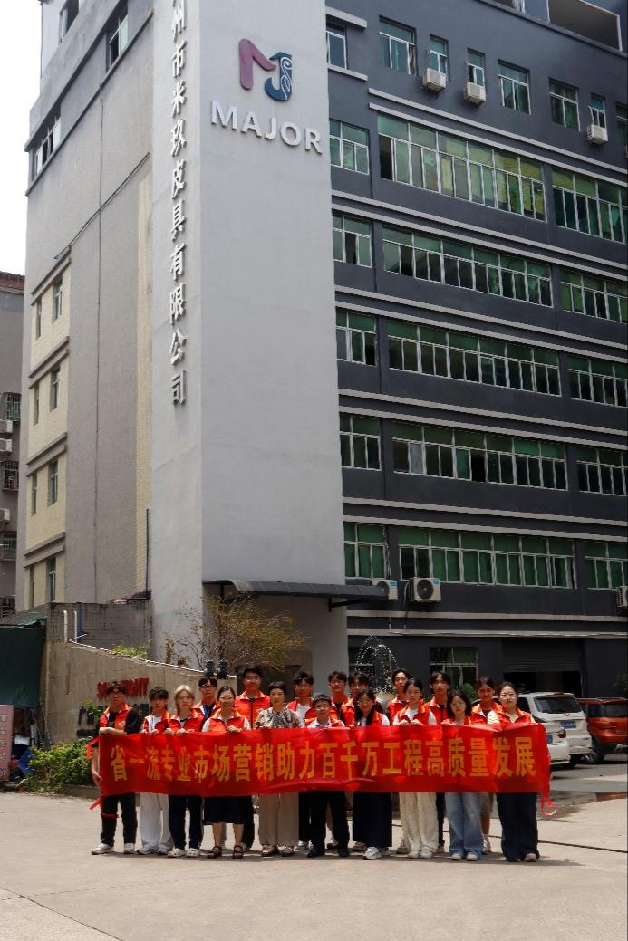 在产业赋能层面,团队聚焦地方特色产业,走访广州玖皮具有限公司,重点考察直播间运营与样板间产品陈列。师生们结合市场营销中的品牌定位、渠道策略等专业知识,与企业负责人探讨直播电商趋势下,如何利用大数据探讨产品推广的新路径,分析如何通过精准定位目标客群、优化视觉呈现提升转化效率,为传统皮具企业数字化转型提供了专业视角。