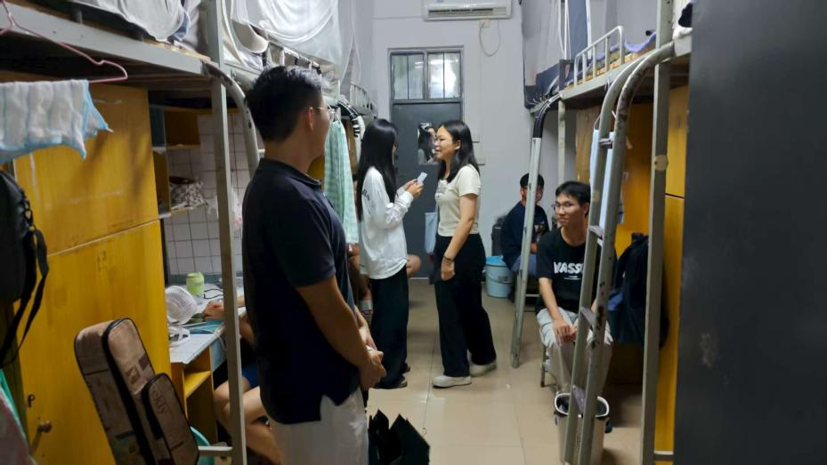 为帮助25 级电子商务 B1 - B4 班新生快速适应大学生活,四位班主任刘千千、王焱翀鸣、蔡智鹏、叶颖菁分别带领各班小导,开展了一场充满温情的查寝活动,为新生们送去专业指导与夏日关怀。