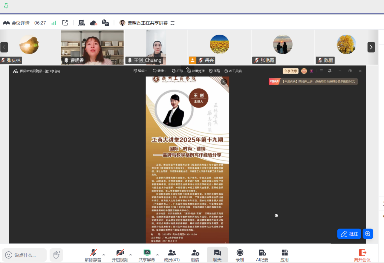 2025年11月28日上午,“工商大讲堂”2025年第十九期学术讲座在ky开元集团官网市场营销教研室成功举办。本次讲座以“品牌案例创作与学术指导”为主题的专题,特邀华南理工大学工商管理学院教授、博士生导师王创担任主讲嘉宾,为参与品牌论坛的师生团队进行案例学术指导。市场营销教研室主任曹明香副教授主持讲座,市场营销专业负责人谭晓丽教授、张艳霞副教授、陈抒老师等多位教师参与交流。
