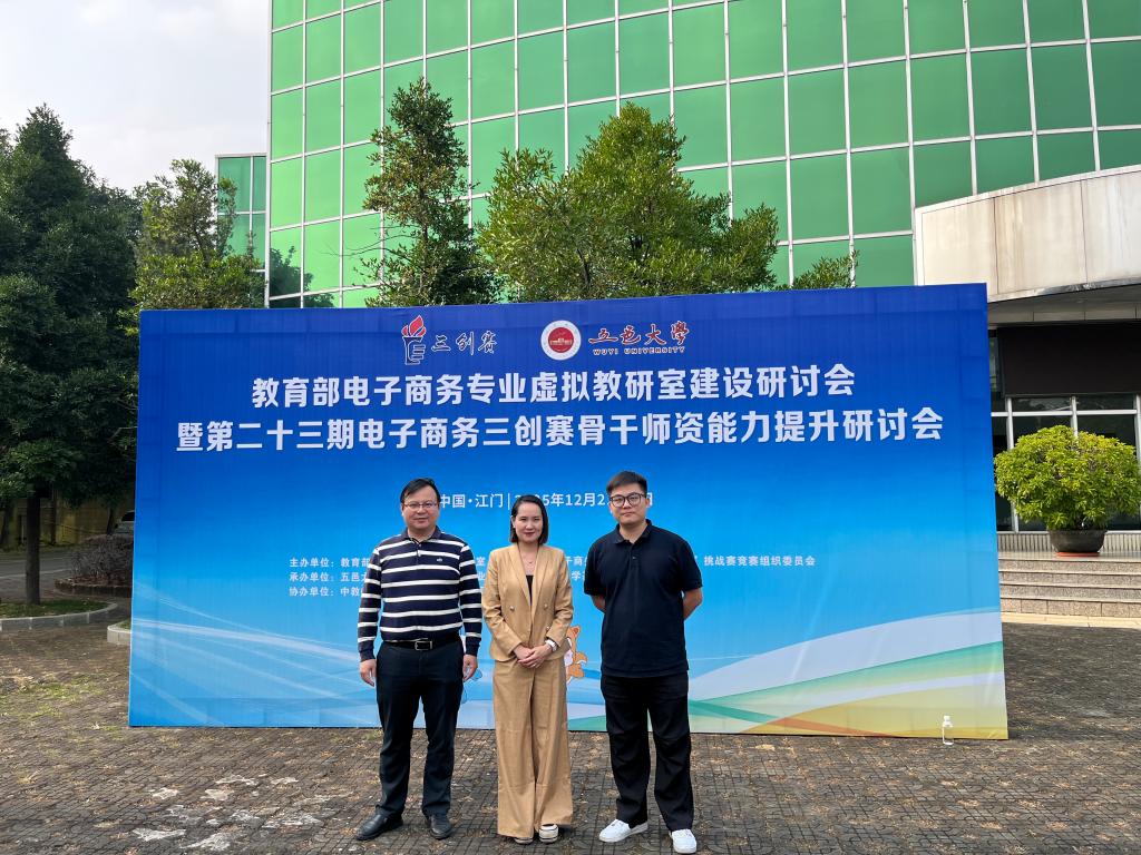 12月20-22日,由教育部电子商务专业虚拟教研室与全国大学生电子商务“创新、创意及创业”挑战赛竞赛组织委员会联合主办,五邑大学承办,中教畅享(广东)科技有限公司协办的“教育部电子商务专业虚拟教研室建设研讨会暨第二十三期电子商务三创赛骨干师资能力提升研讨会”(简称“双研会”)在广东省江门市五邑大学隆重举行。本次会议聚焦三创赛创新发展与虚拟教研室建设、三创赛新规则解读、电子商务专业和课程建设、人才培养创新及产教融合发展等核心议题,吸引了全国几十所高校的专家学者齐聚交流。商学院电子商务专业负责人邓任锋副教授、教研室骨干教师赖洁瑜教授和校电子商务“三创赛”负责人李峰参加了此次会议。其中,赖洁瑜教授还作为特邀嘉宾,以国家一流课程《网络营销》建设为主题作全场专题分享。