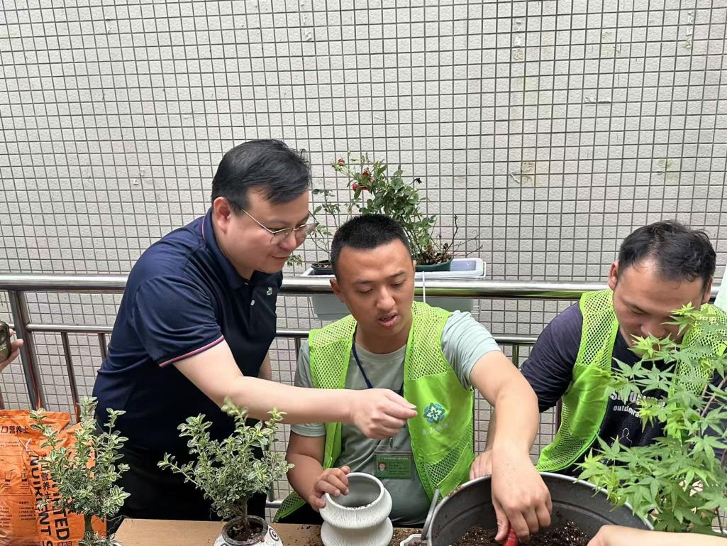 活动现场,老师们提前备好各类绿植幼苗、花盆、营养土及工具,耐心细致地为学员们讲解盆栽制作的步骤与技巧。从绿植的选择、土壤的配比,到幼苗的栽种、后期的养护知识,老师们手把手地进行指导,鼓励学员们发挥创意,打造属于自己的专属盆栽。学员们兴致高昂,积极参与其中,小心翼翼地填土、放苗、浇水,在与植物的亲密接触中感受生命的活力。指尖与泥土的触碰、对绿植生长的期待,让现场氛围温馨而治愈。有学员表示,亲手栽种绿植的过程很有成就感,看着嫩绿的幼苗在自己手中扎根,心里充满了欢喜。