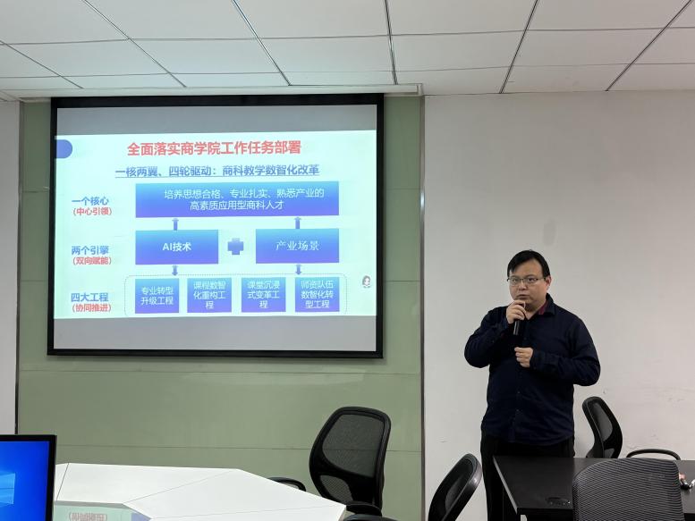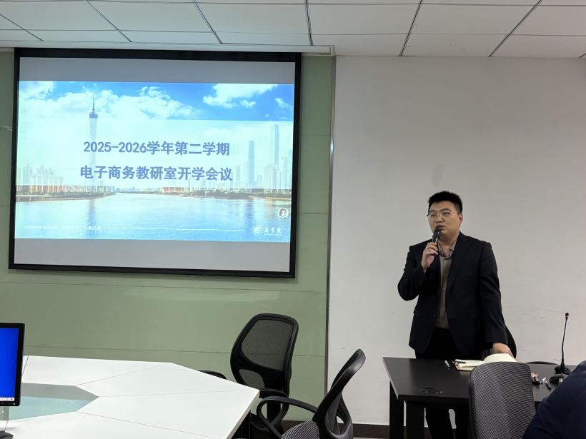为明确新学期工作方向,统筹推进专业建设与教研室发展各项工作,2026年3月4日,电子商务教研室于商501教室召开2025-2026学年第二学期开学会议。教研室全体教师参会,会议由教研室副主任刘鑫老师主持,教研室主任梅思阳博士、电子商务专业负责人邓任锋副教授分别部署相关工作。