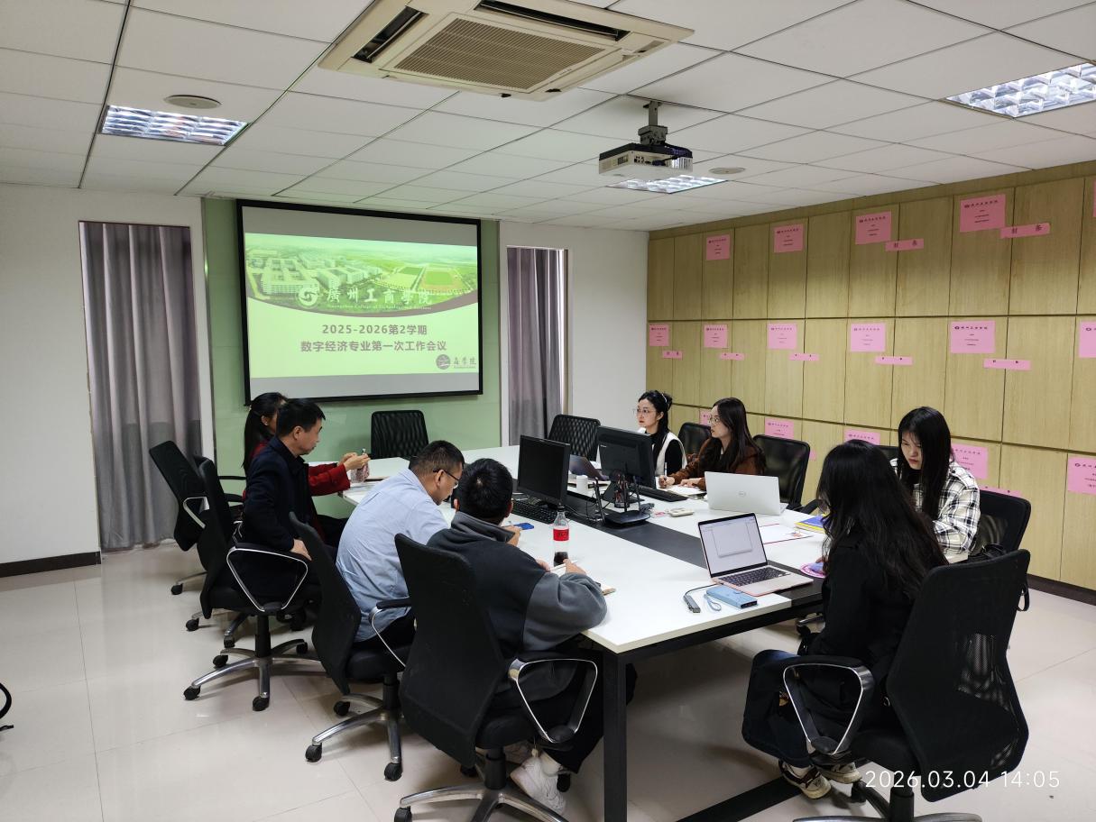 2026年3月4日下午,数字经济教研室在商学院504会议室召开2025-2026学年第二学期第一次工作会议。会议由专业负责人、教研室主任孙水鹅博士主持,全体教师参加。会议围绕新学期工作部署、专业评估、教学改革、科研组织及人才培养等重点任务展开,系统谋划新学期发展方向。