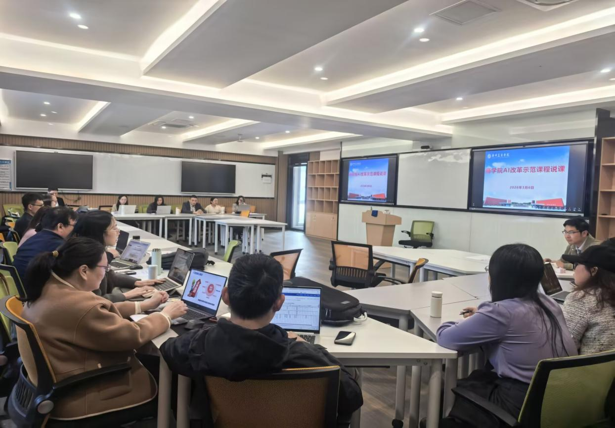为进一步推动人工智能技术与教育教学深度融合,深化课堂教学改革,提升教师数字化教学能力。2026年3月6日,我院组织开展了AI改革示范课程说课活动。学院相关领导、专业负责人及相关课程负责人参与展示交流。