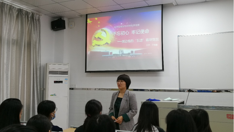 2020年11月23日下午16时,经济贸易系党总支在教学楼310开展了“不忘初心、牢记使命——做合格的‘五进’青年党员“主题教育党课。本次党课由经贸系党课指导老师于佩鑫老师担任主讲人,主要参会对象为经济贸易系第十期全体发展对象。