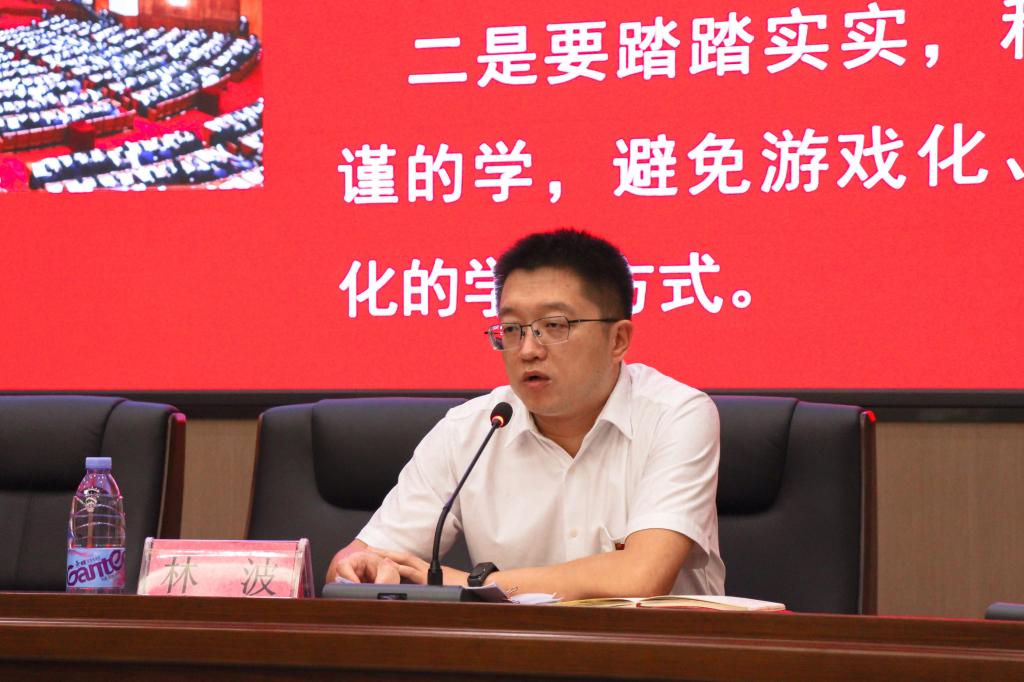 党的二十大是在全党全国各族人民迈上全面建设社会主义现代化国家新征程、向第二个百年奋斗目标进军的关键时刻召开的一次十分重要的大会。为深入学习领会党的二十大精神,进一步部署推进党的二十大精神学习贯彻工作,11月24日,商学院党委中心组在图书馆414会议室开展主题为《让青春在全面建设社会主义现代化国家的火热实践中绽开绚丽之花》的专题讲座。讲座由商学院党委书记林波同志主讲,党委常务副书记张娜同志主持,商学院全体党务干部、全体学生党员参加。
