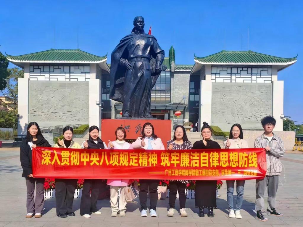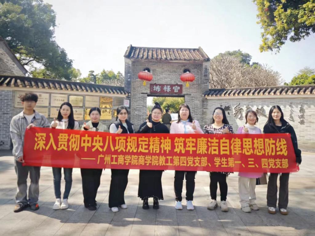为深入学习贯彻中央八项规定及其实施细则精神,持续深化党风廉政教育,锤炼党员党性修养,筑牢廉洁自律思想防线,2026年2月3日,在商学院教工第四党支部书记谢桂珊的统筹组织下,教工第四党支部联合学生第一、第三、第四党支部党员同志,前往花都区洪秀全故居及洪秀全纪念馆,开展“深入贯彻中央八项规定精神”学习教育活动。本次活动集实地参观、座谈交流、基地共建于一体,推动纪律教育与红色育人深度融合,切实把作风建设要求落到实处。