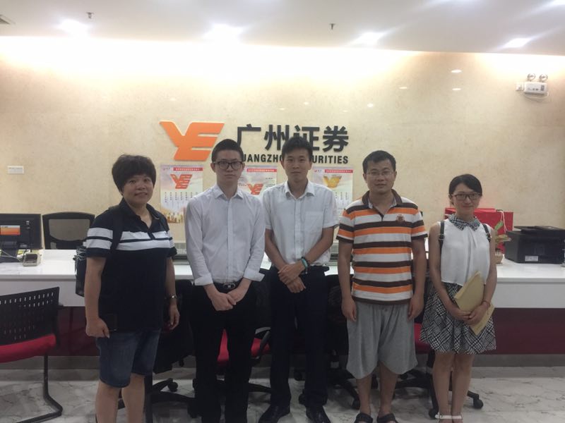 【本网讯】7月9日,我系钟嘉毅老师、谭红叶老师、魏芳老师前往广州证券狮岭营业部进行参观访问,与客户经理崔奇锋进行了深入交谈。分别就企业发展状况、继续发展所面临的挑战、企业对人才的需求、对“互联网”时代数字金融人才培养的建议等问题交换了意见。
