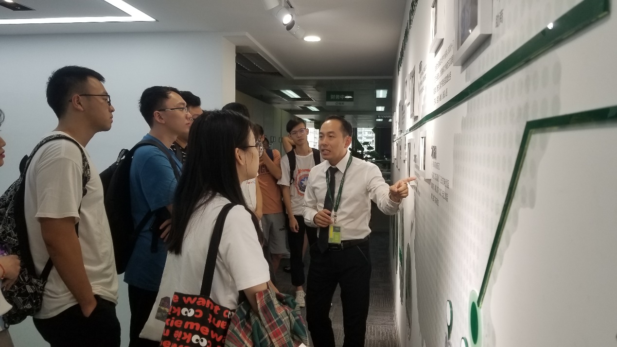 到达链家广州总部楼下后,链家工作人员带领大家分组进行参观学习,分别参观了链家信贷交易中心、链家办公区域,并为同学们讲解了链家的企业文化、发展历程等。然后在工作人员的带领下,同学们来到会议室进行深入认真学习,听取链家校园招聘部黄立涛经理为大家作企业运营模式及如何实现企业运营最大化讲解。