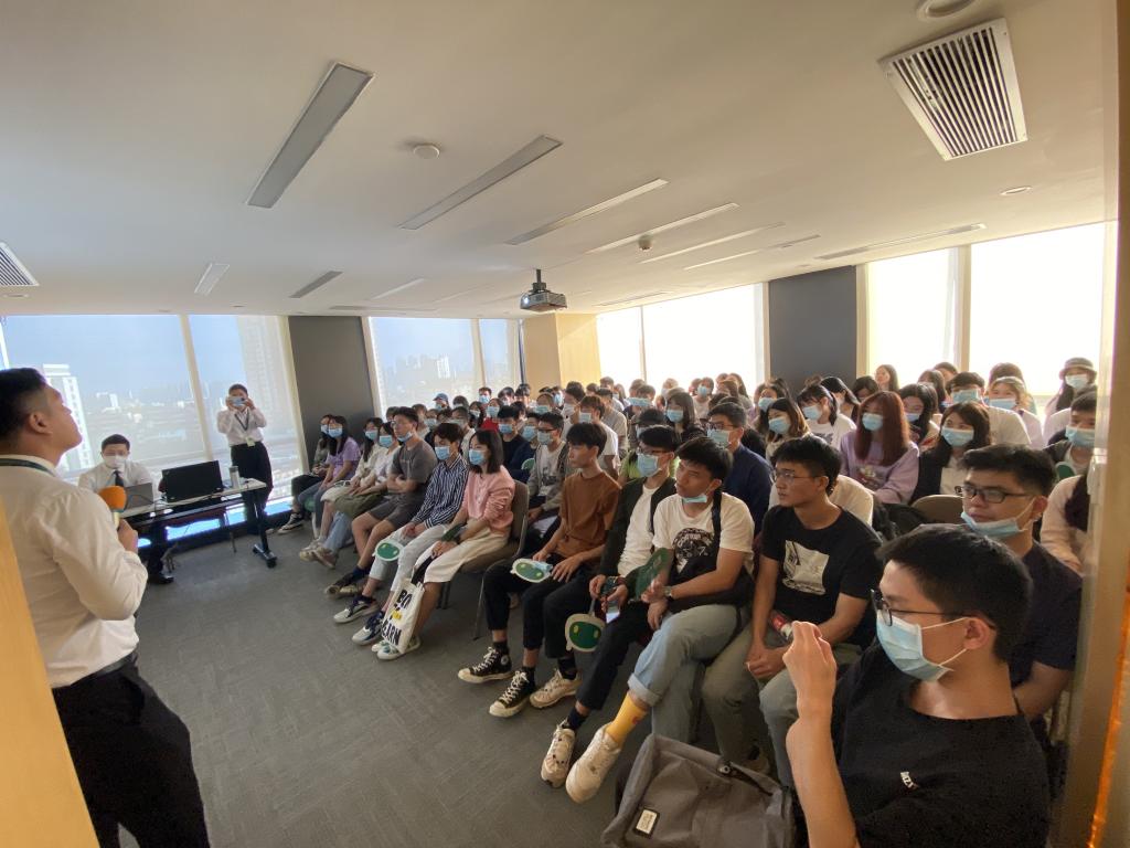 校外实践基地的老师们专门为同学们准备会议,围绕美东电子商务产业园和目前市场的就业情况进行演讲,同学们在会上认真听讲,积极互动。