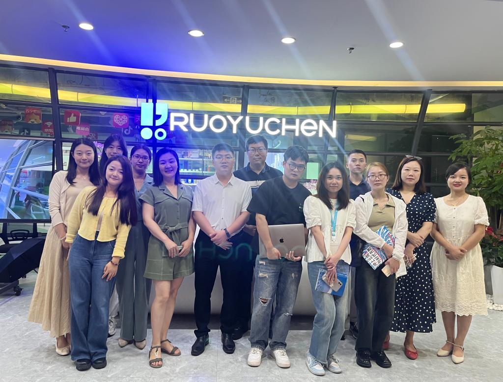 2023年9月2日上午,商学院电子商务专业教研室主任携同教师们一行12人到访广州若羽臣科技股份有限公司,与企业程经理及五位业务经理座谈,并对教师暑假顶岗实践工作进行调研总结。