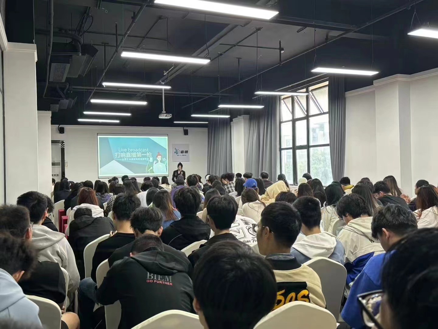 通过培训后,下午的实践任务被布置给了集中实习的学生。在这个环节中,学生有机会将所学的直播营销知识应用于实际场景,展示其运用直播技巧的能力。这不仅提高了学员们的实操能力,还帮助他们更好地理解和掌握直播营销的关键因素。