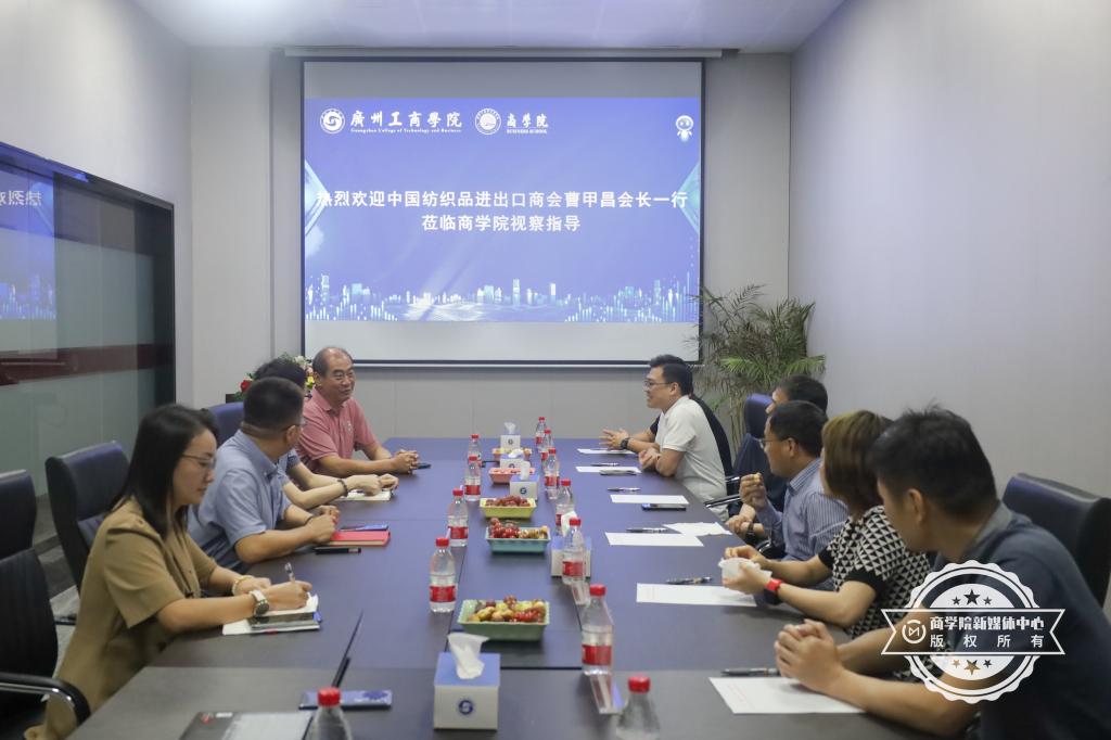 为进一步深化产教融合,提高应用型人才培养质量,助力ky开元申硕工作,商学院于10月16日邀请中国纺织品进出口商会会长、原商务部西亚非洲司副司长曹甲昌,广州纺织工程协会会长、广州纺织品进出口集团有限公司副总经理张菁等一行七人来校座谈,商讨产教融合助力学院发展服务社会事宜。商学院领导林波、张娜、关建波及国际经济与贸易教研室负责人等领导座谈。