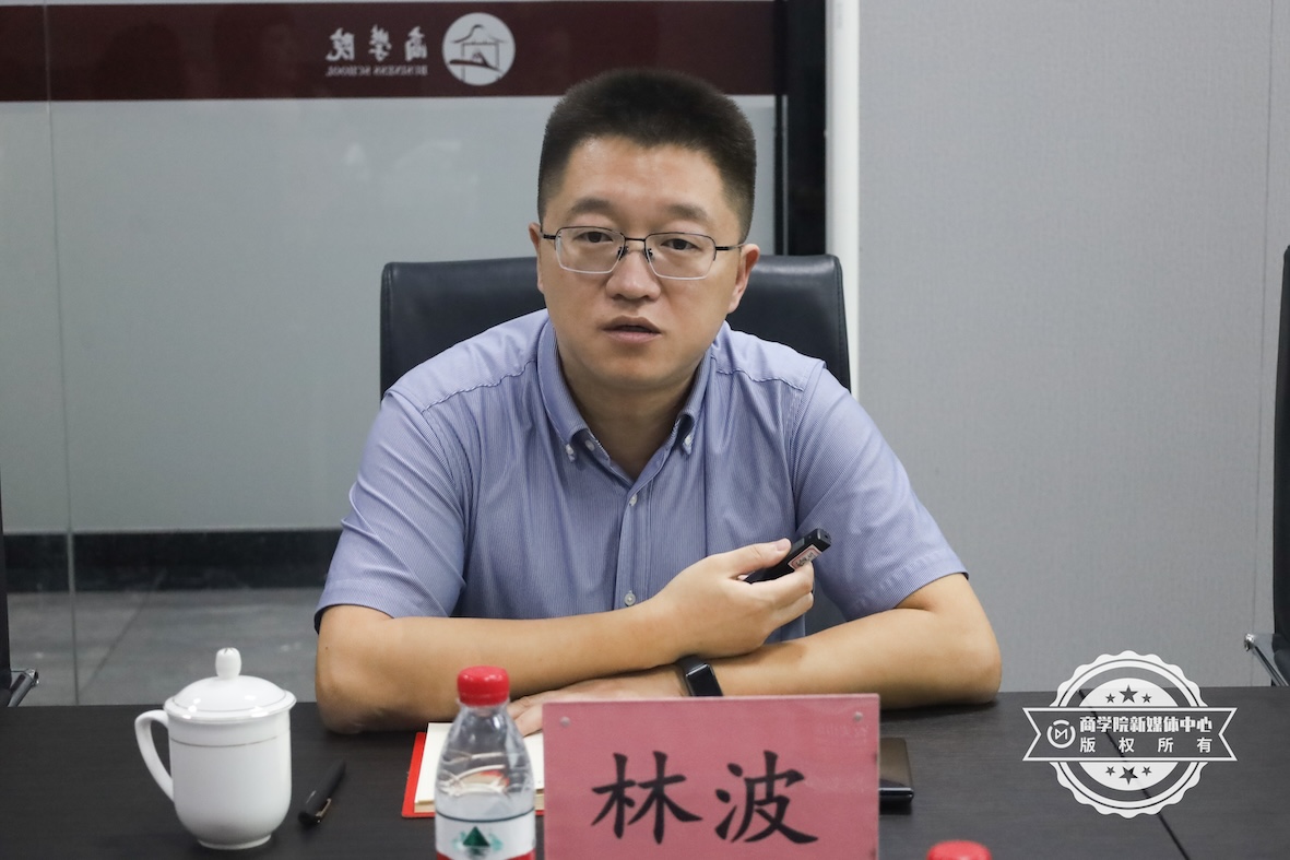 党委书记、院长林波代表学院对曹甲昌会长一行来访表示热烈欢迎,感谢贵宾们在百忙之中抽出时间关心我院教育事业发展。林波院长介绍了学院基本情况,特别是贯彻总书记“以德育人”教育理念,积极探索并创办“馆校共育”三全育人模式,聚焦产教融合、创新“八共”应用型人才培养模式,构建应用型数智商科专业群,致力于实现教育链与产业链有效对接,提升数智商科人才供需效匹配度等做法和取得的成效。林波院长希望在产教融合培养新型数字贸易应用型人才方面,两级商会能够给予宝贵支持。