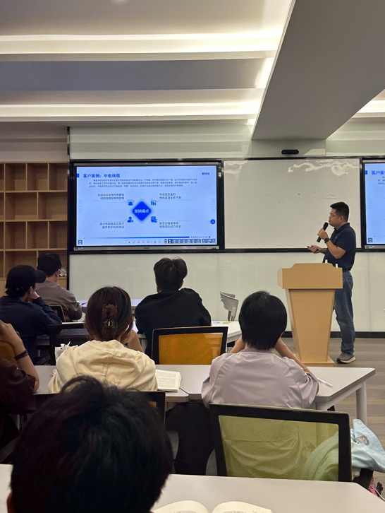 课堂伊始,授课老师为同学们讲解了人工智能在营销领域的应用及相关基础理论内容。随后何总经理对企业的人工智能技术和产品展开了深入剖析,同时借助电缆行业和跨境电商行业的两个典型客户案例,向同学们展示了人工智能技术在营销领域的巨大潜力,人工智能技术为营销行业带来了前所未有的变革,助力企业实现了营销效率的全面提升。何总经理还就人工智能在企业实际运用中可能存在的问题和挑战进行了讲解,如数据安全、隐私保护、算法歧视等,并分享了企业应对相应问题的举措。他强调企业在应用人工智能技术时,要严格遵守法律法规,确保技术应用的合规性。