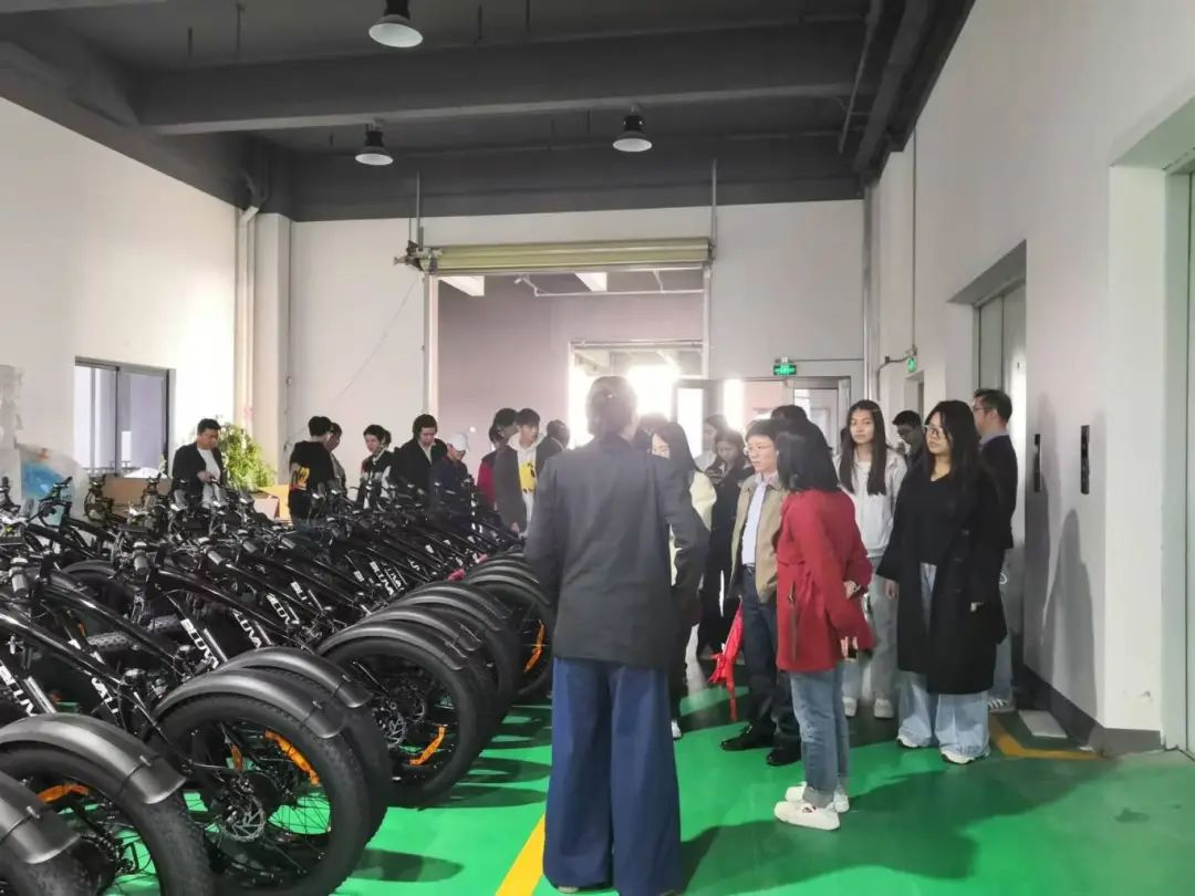接下来师生们参观了广东慧鸿智能科技有限公司的智能制造车间。在这里,他们看到了琳琅满目的两轮车产品,对车间的生产流程、设备配置以及质量控制体系有了深入地了解。