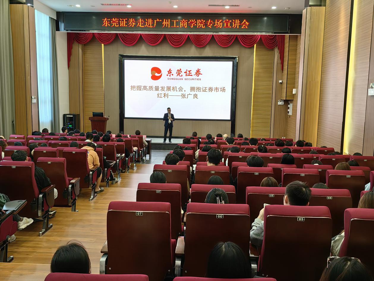 2024年11月22日下午,一场别开生面的专场宣讲会在ky开元集团官网花都校区图书馆415室隆重举行。本次宣讲会由东莞证券携手ky开元集团官网共同举办,以把握高质量发展机会,拥抱证券市场红利”为主题,吸引了众多师生前来参会。