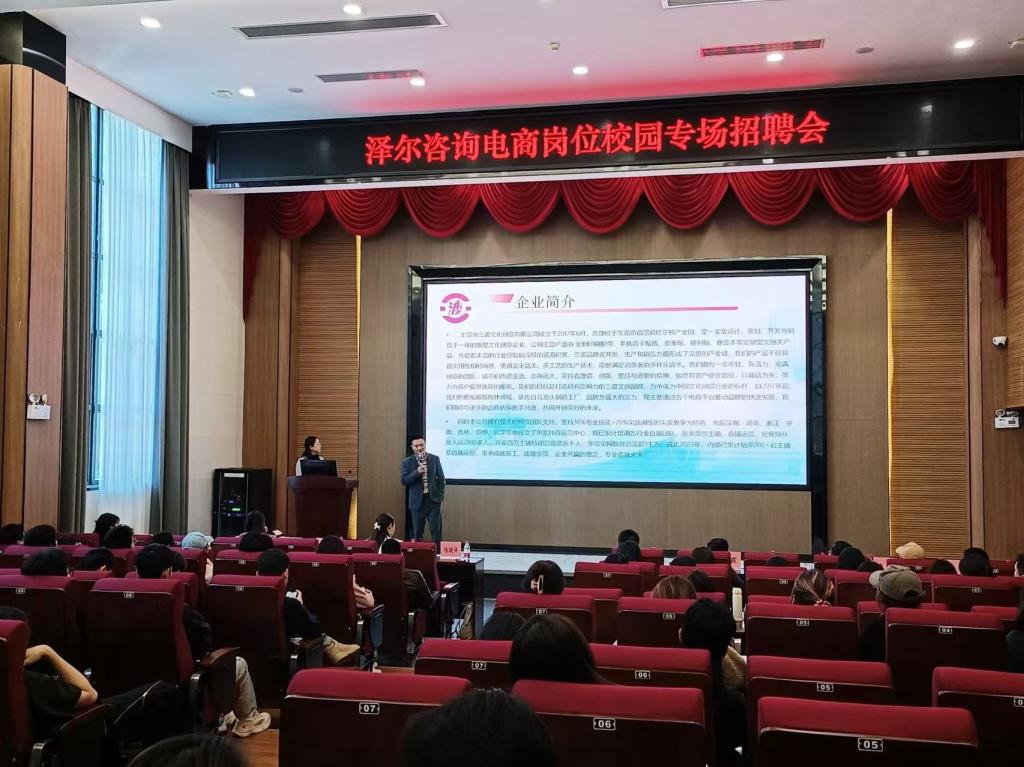 会议由电子商务教研室副主任刘鑫主持,五家企业依次进行了宣讲,详细介绍了各自的品牌文化和招聘岗位等基本情况。随后,企业代表与学生就职业发展、岗位信息、行业选择等方向进行了深入交流。