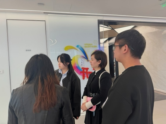 当天,师生一行受到若羽臣科技公司热情接待,由校招负责人舒小姐亲自带领参观。在舒小姐的引导下,师生们参观了公司的办公环境、项目展示区以及员工活动中心等场所。通过参观,师生们对公司的工作氛围、企业文化以及业务发展有了更直观的了解,感受到了企业蓬勃向上的发展态势。